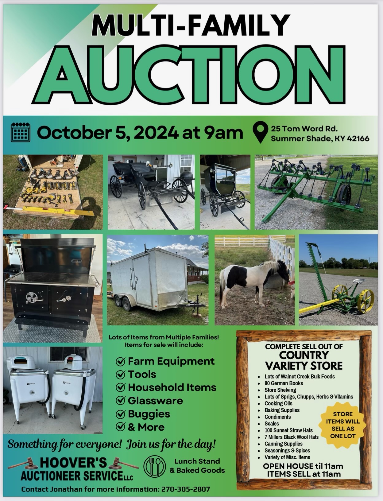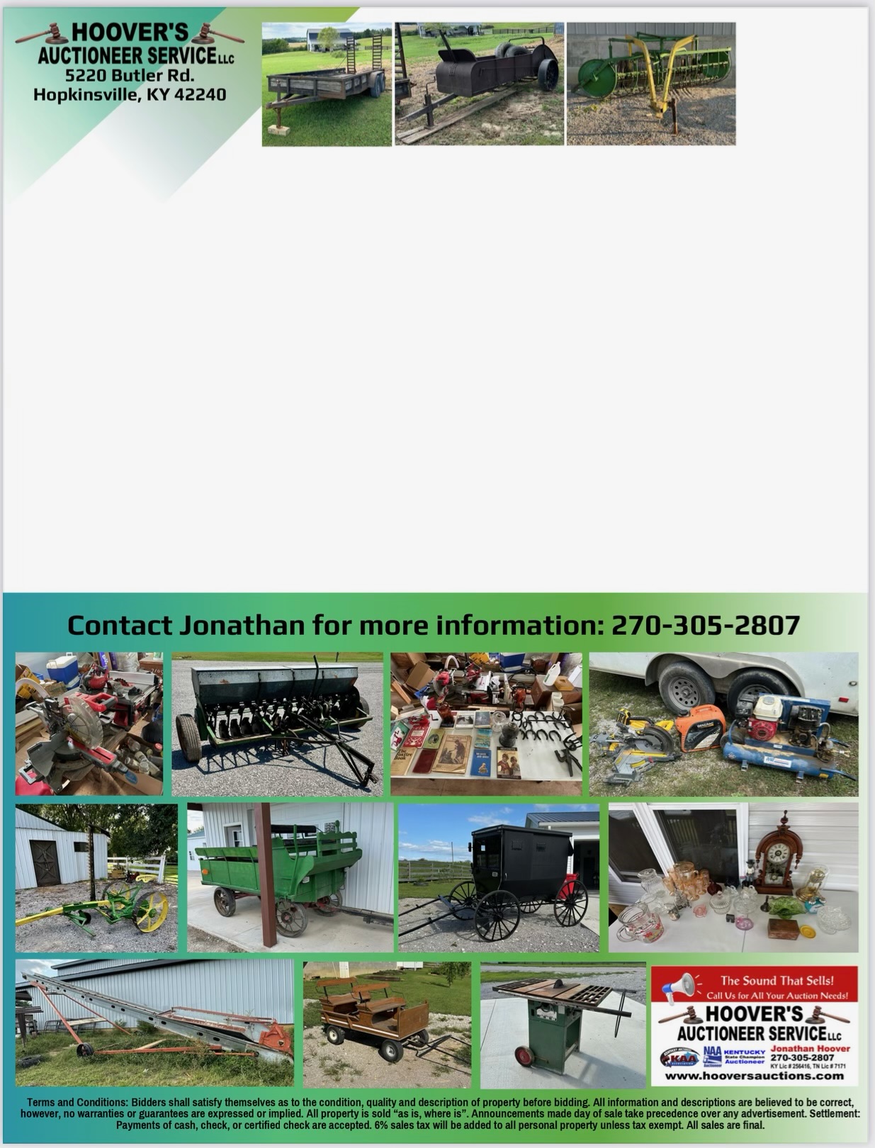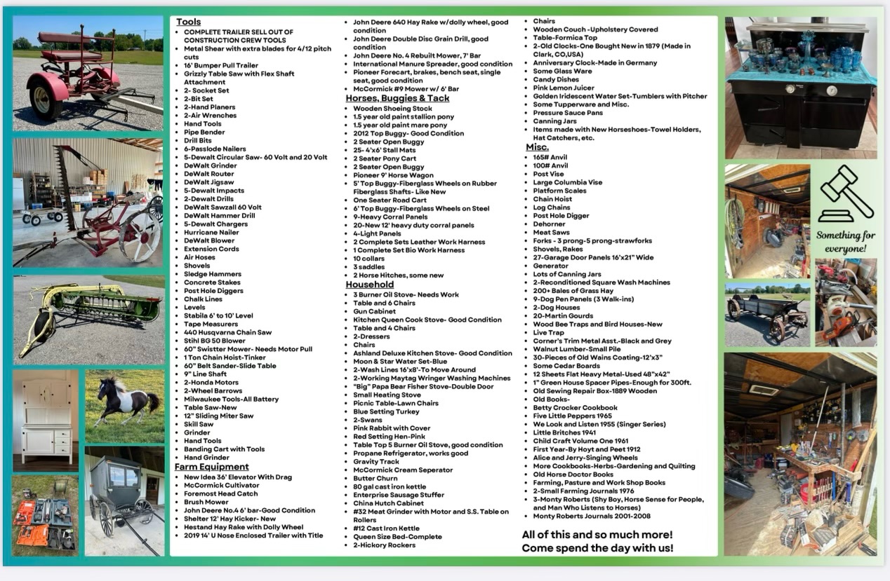Join us for a full day of farm equipment, tools, household items, glassware, buggies, & more!