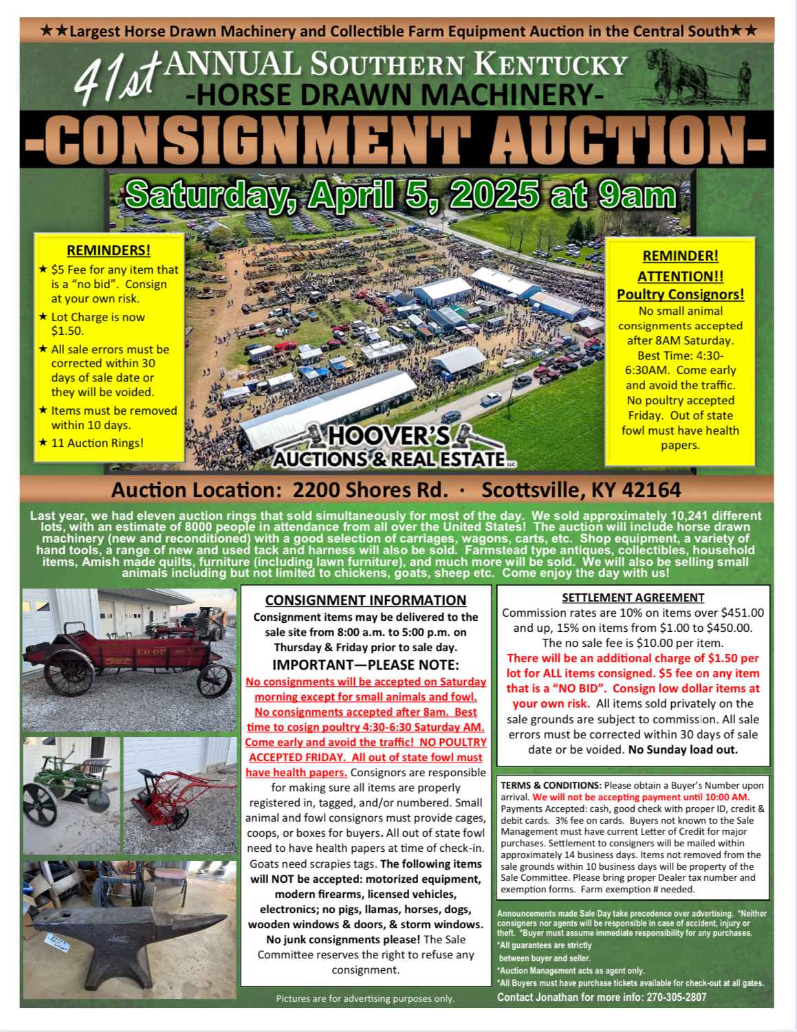 ️41st Annual Southern KY Horse Drawn Machinery Consignment Auction