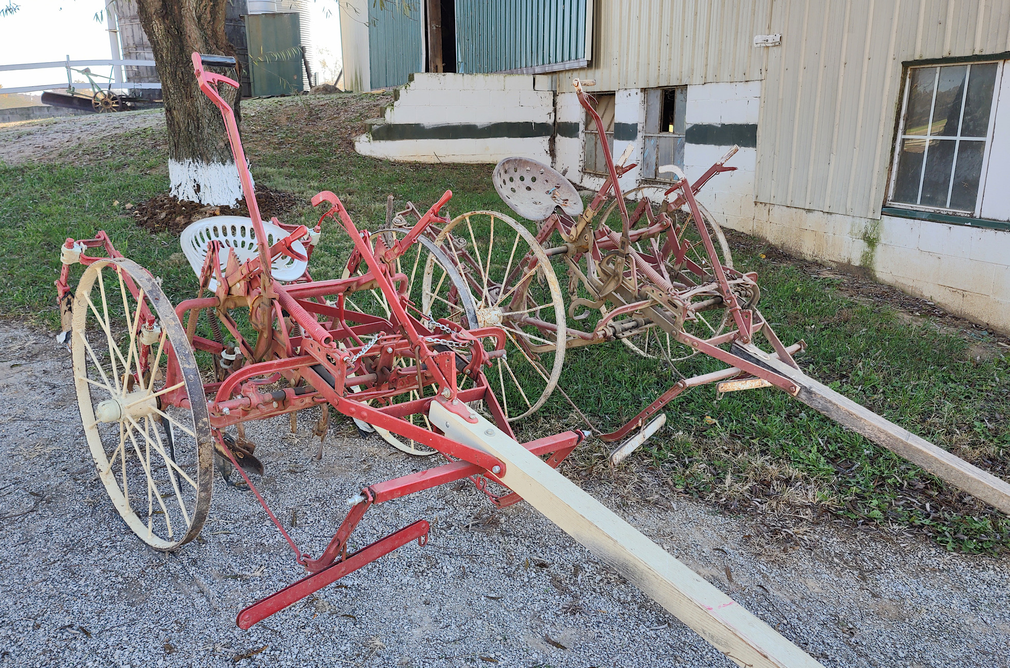 A Full Line up of Horse Drawn Farm Equipment.