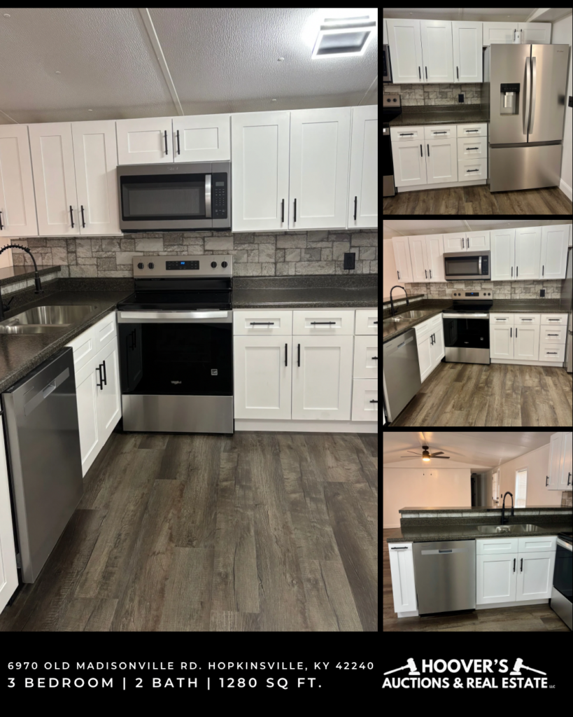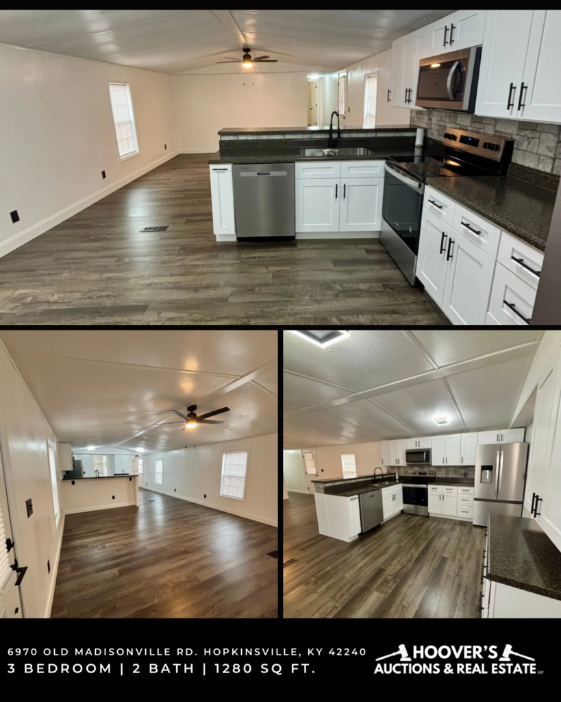 Move-in ready 1995 single-section manufactured home in Hopkinsville, KY, offering 3 bedrooms and 2 full bathrooms on a concrete block foundation. This fully renovated single wide features a long list of recent upgrades, including new siding, luxury vinyl plank flooring, new windows, new exterior and interior doors, new kitchen cabinets, stainless steel appliances, updated light fixtures, new water heater, and a new HVAC system. The functional open layout provides comfortable living space, while the new deck adds outdoor enjoyment. Additional features include a one-car attached carport and low-maintenance exterior. Conveniently located on Old Madisonville Road with easy access to Hopkinsville and Crofton, this home is ideal for buyers seeking an updated manufactured home that is truly move-in ready.